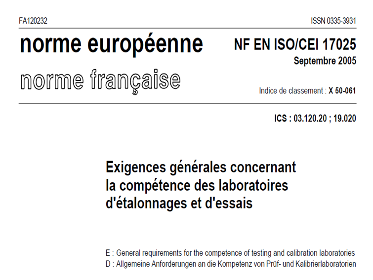 • Assurance qualité des résultats d'essai et d'étalonnage ;