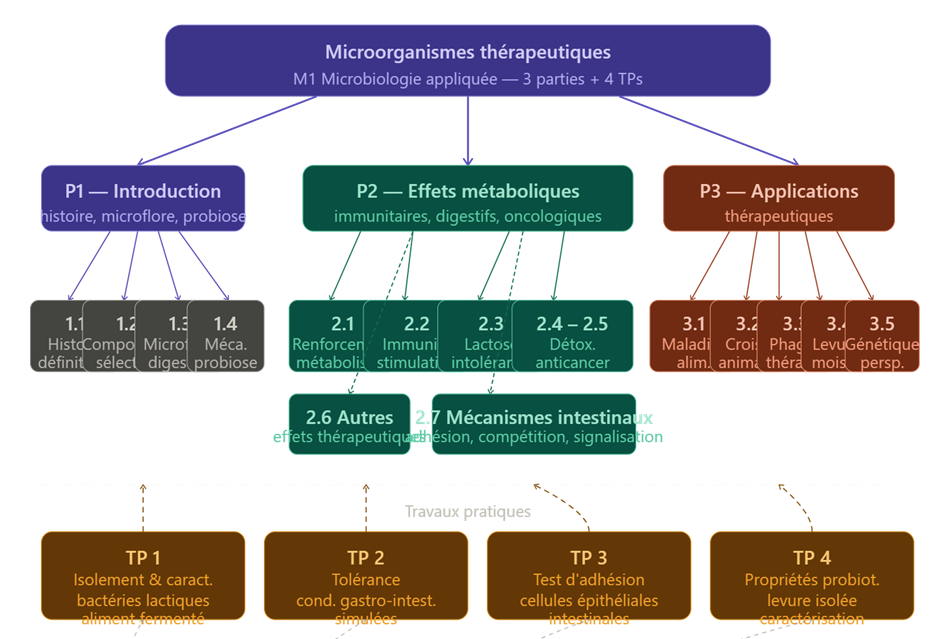 Le cours « Microorganismes thérapeutiques, M1 Microbiologie appliquée » est divisé en 3 parties :